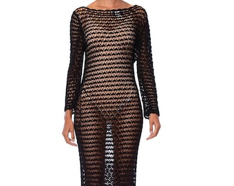 1990s Dolce Gabbana Black Viscose Crochet Long Sleeve Maxi Etsy Canada